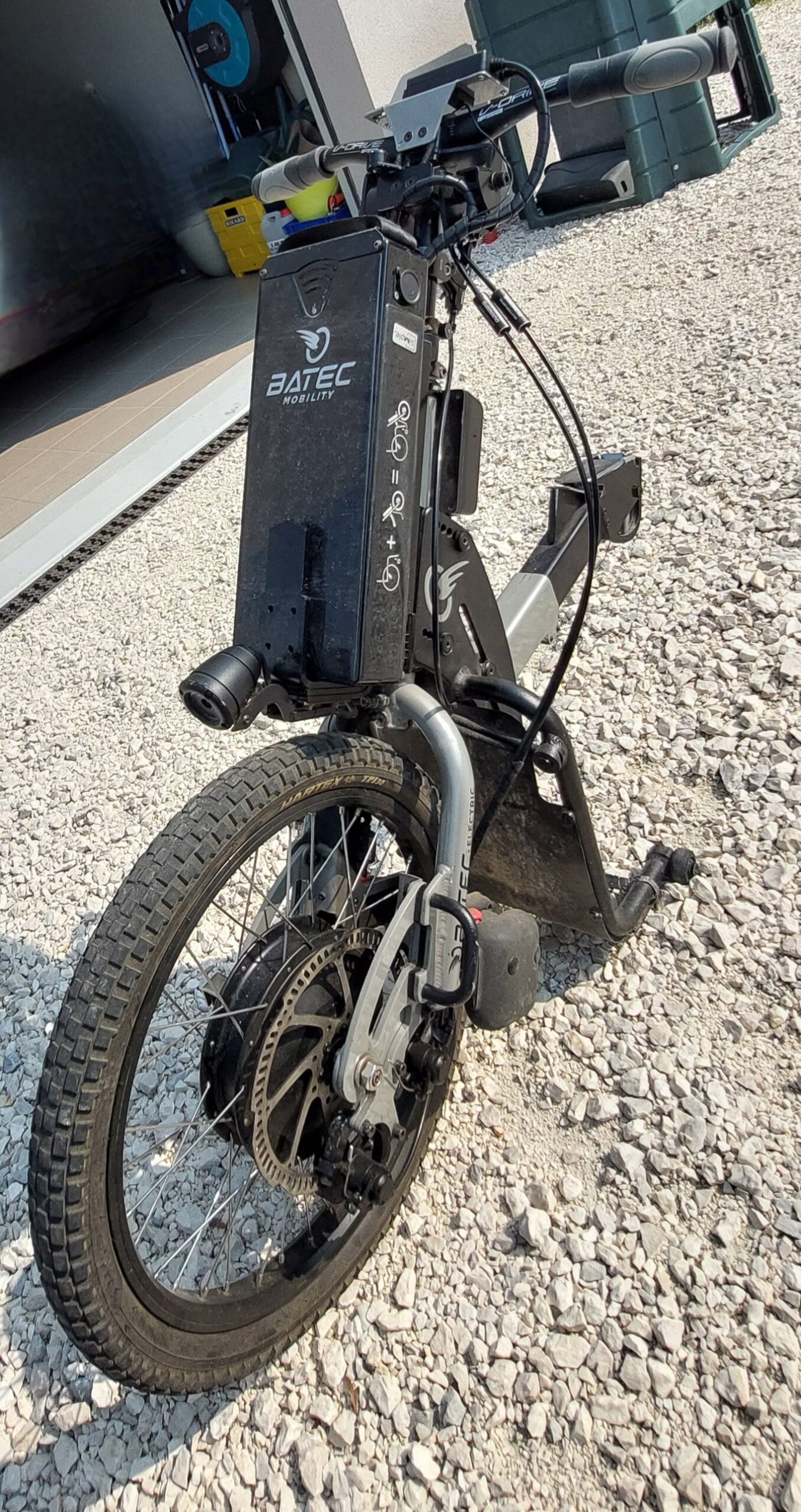 Équipé tetraplegic avec guidon à pousser pour freiner et baisser pour accélérer.