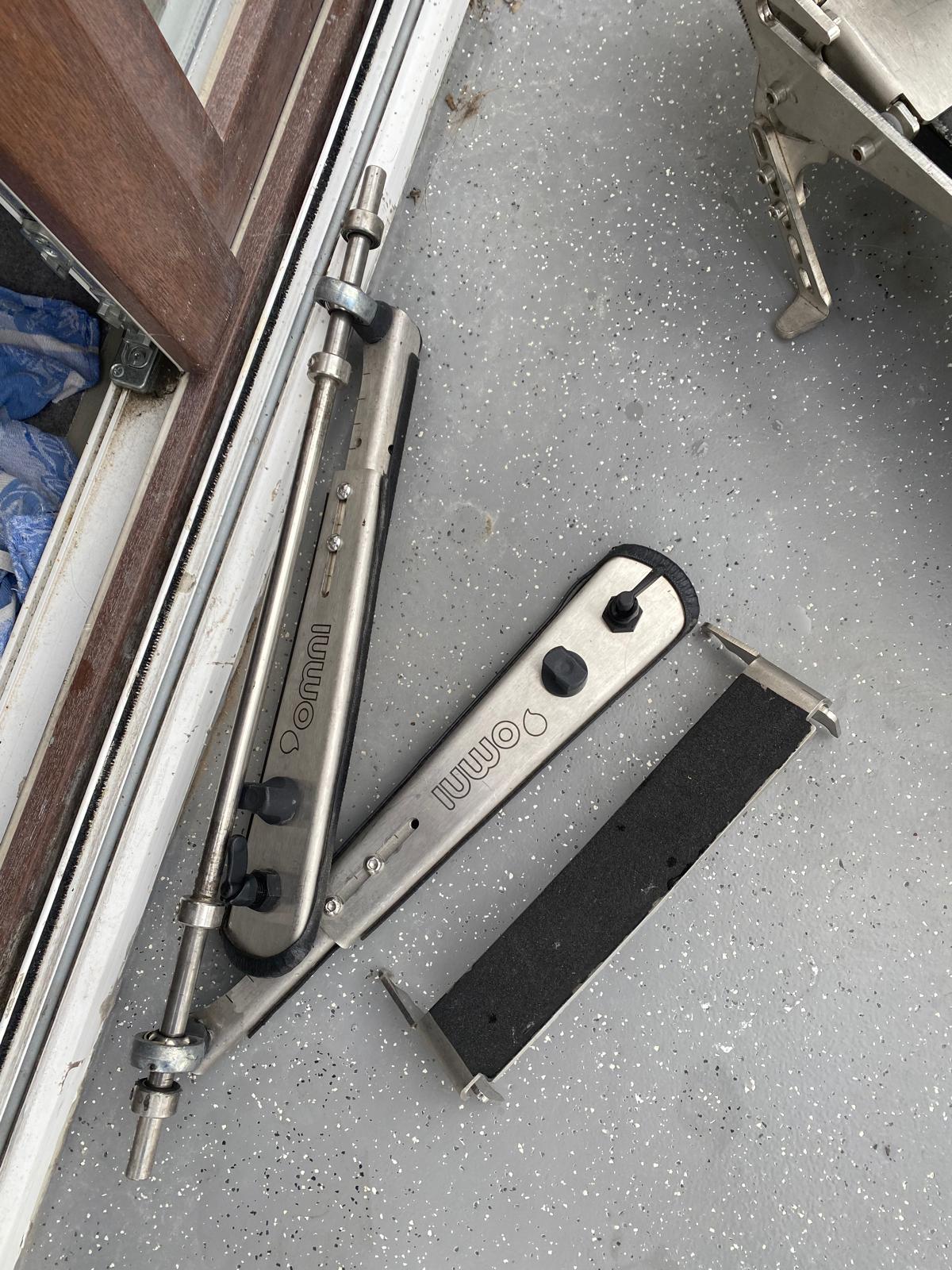 système « Globe Trotter » de chez Omni = fixation universelle breveté permettant de motoriser son fauteuil roulant en l’attachant à une trottinette électrique.